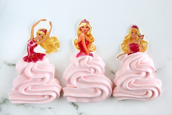 הפעם הנשיקות לבשו מראה של ברבי בעזרת דף סוכר ייעודי שמצמידים לזילופי המרנג לפני האפייה.