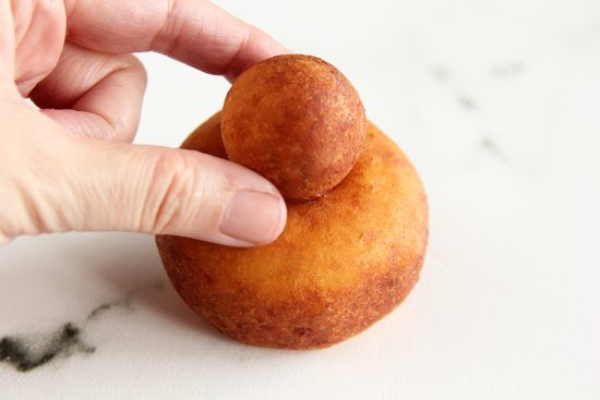 כעת יש ליצור מהבצק 2 צורות שונות- בסיסי דונאטס וכדורונים קטנים.